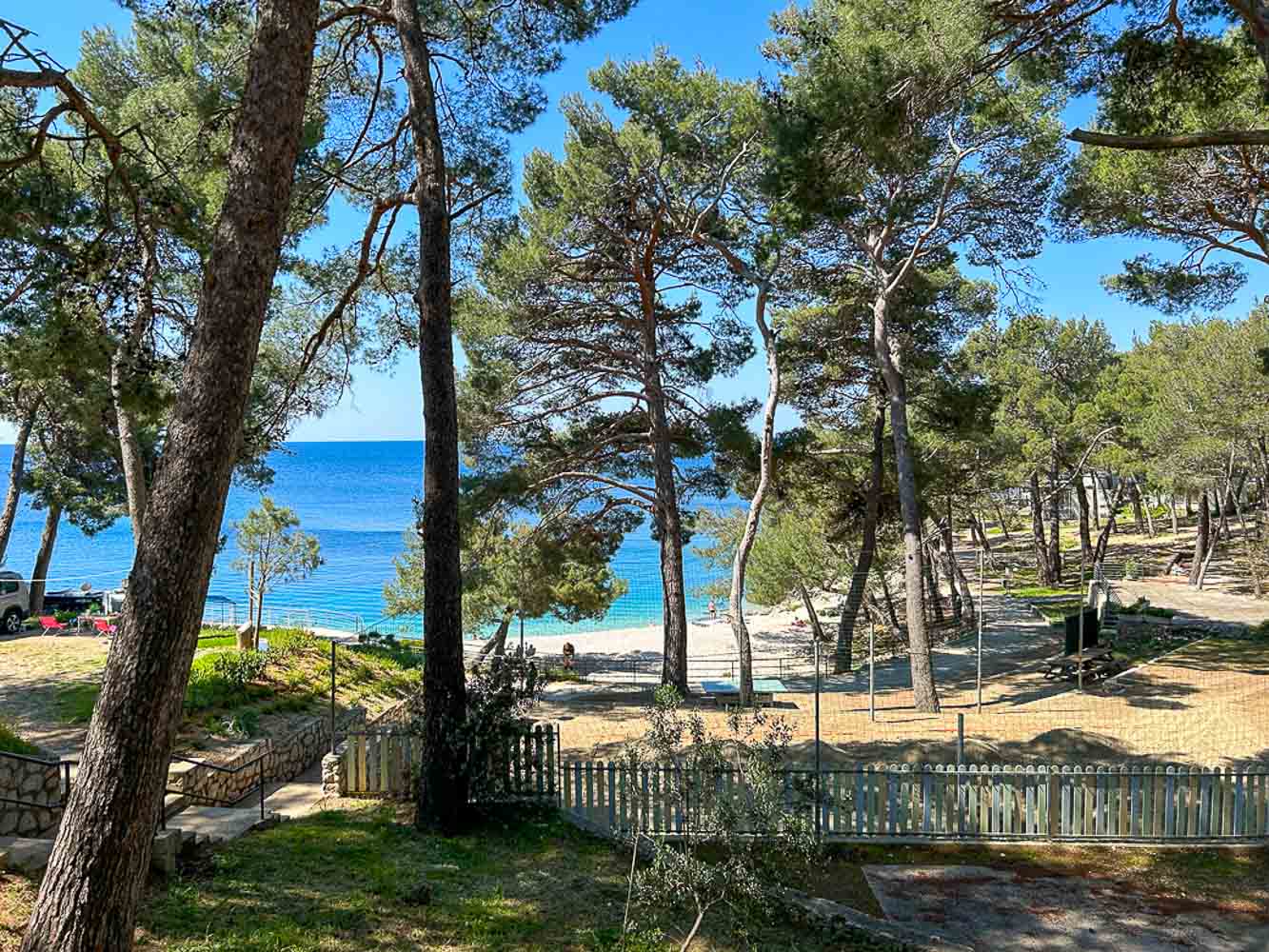 👉 Tipp: Wer es ruhiger mag, sucht sich auf Čikat einen Platz weiter hinten im Pinienwald. Dort hat man Schatten und Abstand vom Trubel, erreicht aber in wenigen Minuten das Meer. Weitere Infos findest du hier Camp Cikat
