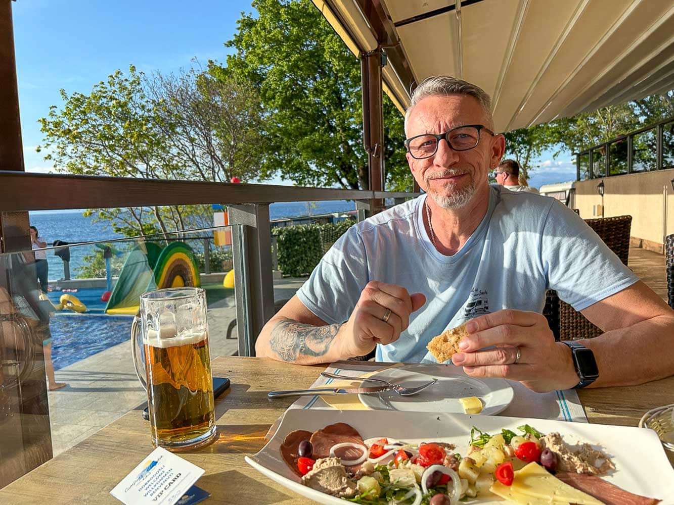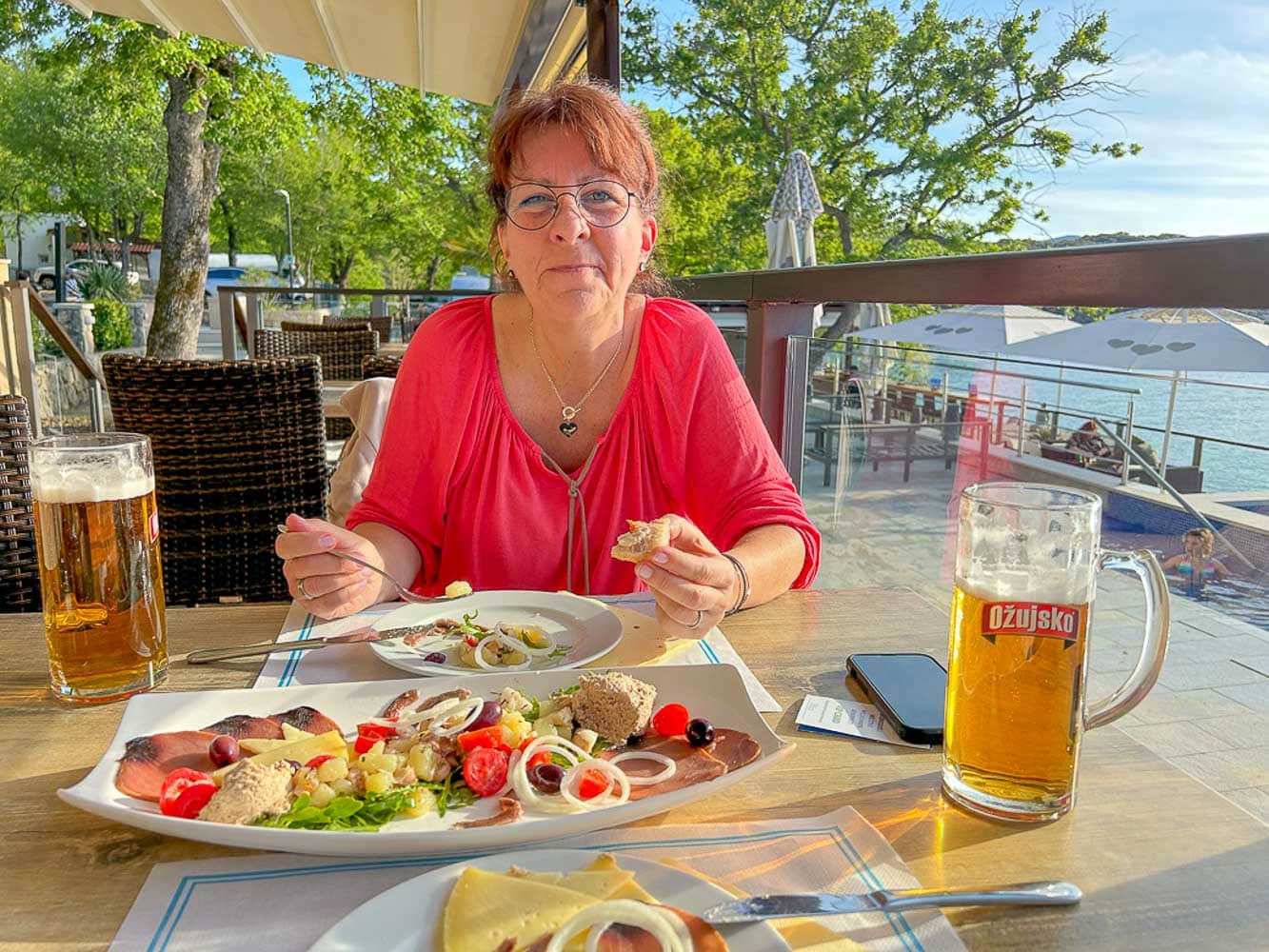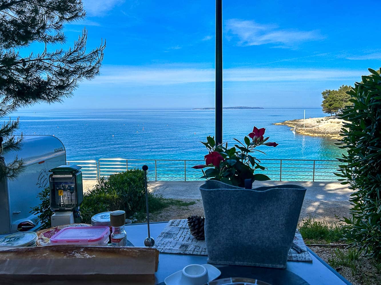 Die ersten Tage auf Krk waren ein Spiel der Elemente: mal Sonne, mal Regen, immer begleitet von diesem endlosen Blick aufs Meer. Wir verbrachten lange Lesestunden im Camper, machten Spaziergänge am Wasser und ließen uns im Restaurant am Platz verwöhnen.