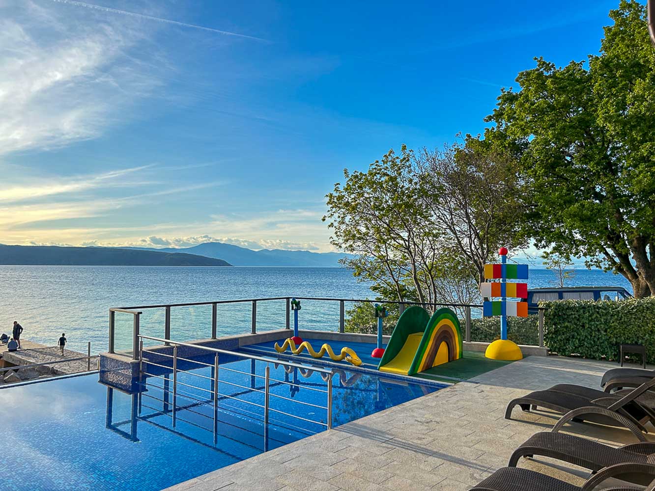 Auf dem Campingplatz Čikat hatten wir Glück: ein Stellplatz in zweiter Reihe, aber mit freiem Blick aufs Meer. Der Platz ist einer der größten der Kvarner Bucht und perfekt für Familien – mit großem Wasserpark, Restaurants, Supermarkt und sogar Hundestrand.