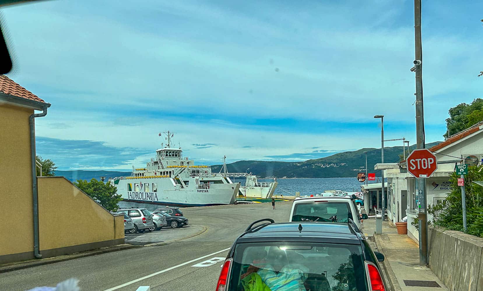 Die Überfahrt dauert rund 25 Minuten, fährt mehrmals täglich und kostet für Camper bis 7 m Länge etwa 35–40 € inklusive Fahrer, plus ca. 3–5 € pro Mitfahrer (Stand 2023). Alles lief unkompliziert: Ticket kaufen, einreihen, rauf auf die Fähre – und schon schippert man über das türkisblaue Wasser Richtung Merag.