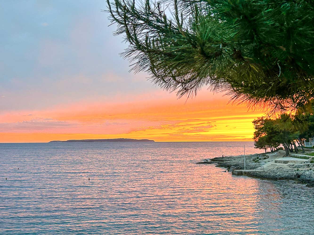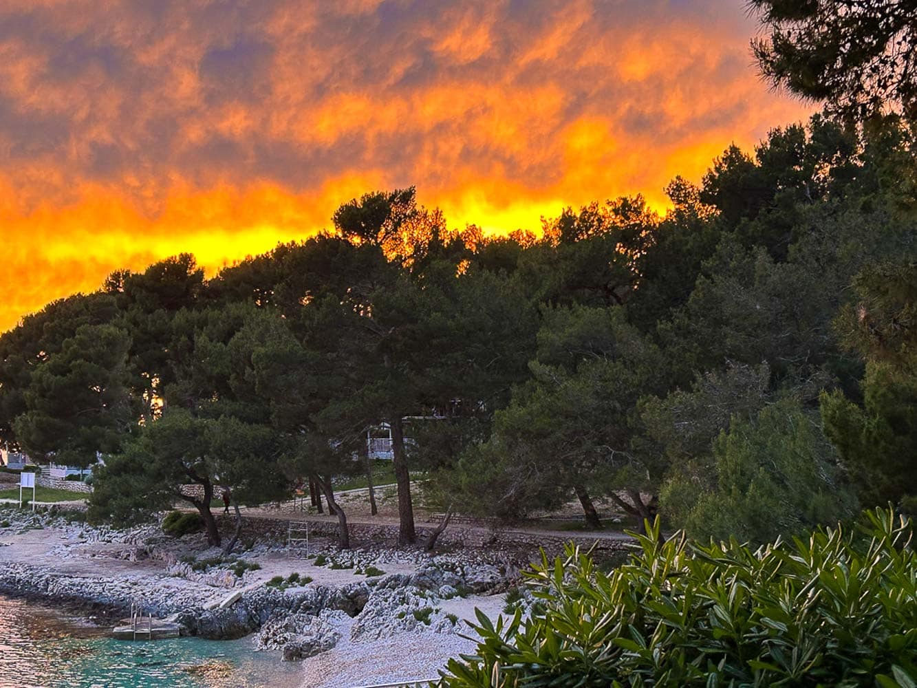 Auch das Wetter spielte mit. An manchen Tagen schüttete es wie aus Kübeln – perfekt, um an unserer Webseite zu arbeiten oder Videos zu schneiden. An anderen Tagen strahlte die Sonne, wir besuchten die Kirche des Heiligen Martin im Ortskern von Mali Lošinj oder spazierten  am Strand entlang.