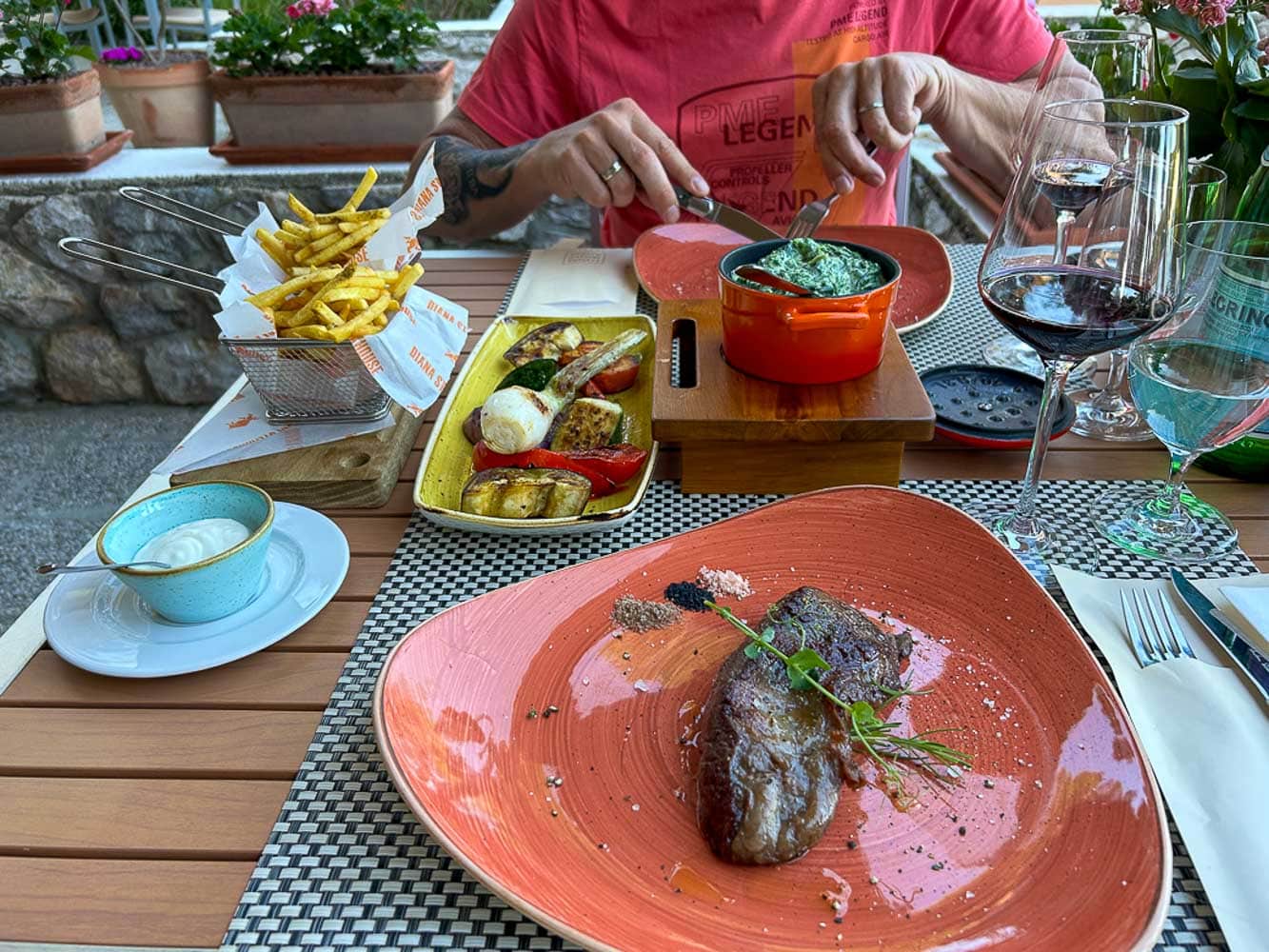 Kulinarisch war die Insel ein Paradies. Wir probierten uns durch Fischplatten mit gegrilltem Gemüse, aromatische Gnocchi mit Trüffeln, butterzarte Fleischplatten und Premium-Steaks. Besonders in Erinnerung bleiben uns zwei Orte: